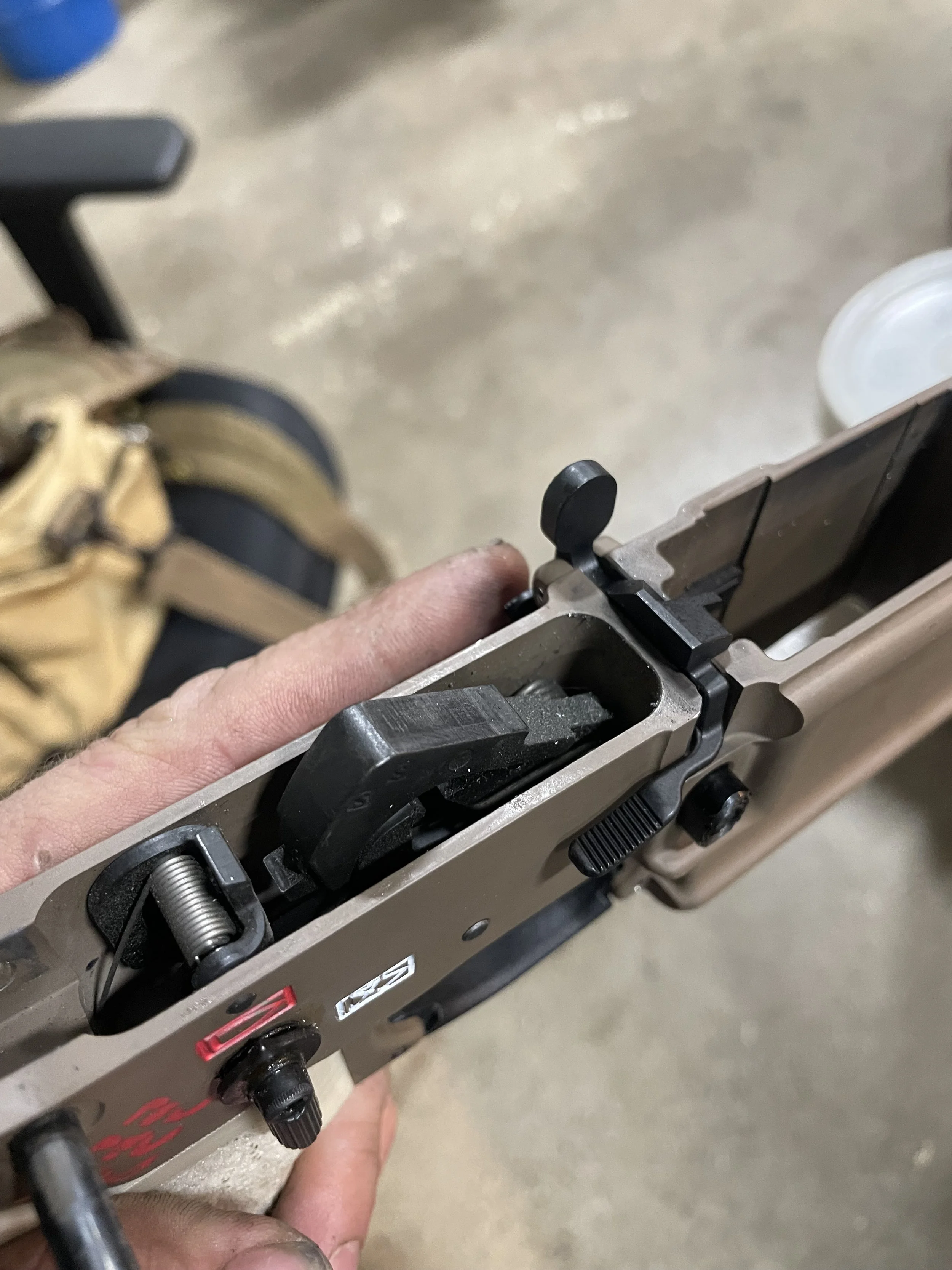 - Cut your standard lower to accept a ambidextrious bolt catch